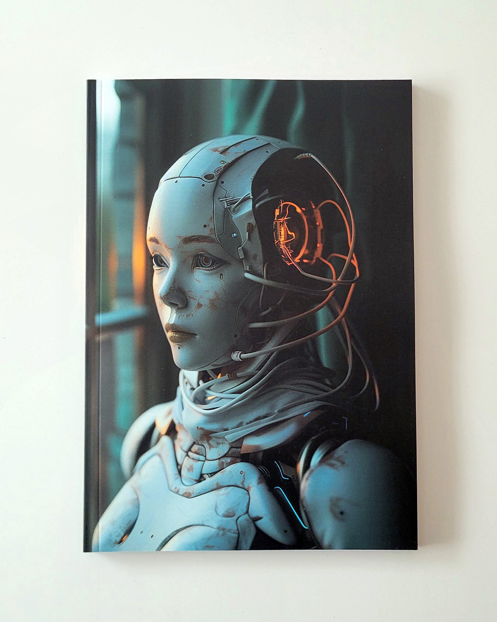 Llibreta de tapa tova, mida DIN-A5, 80 pàgines, fulls blancs. Il·lustració a la coberta i a la contracoberta i a l’interior de coberta i de contracoberta.